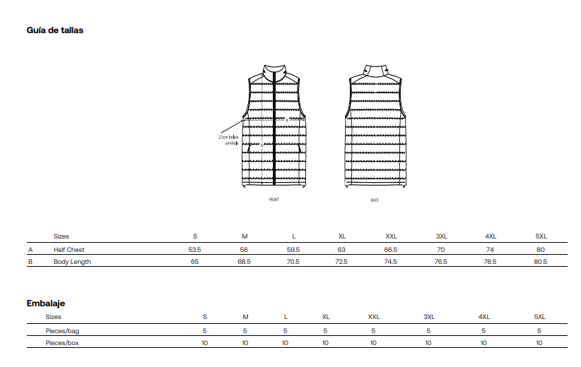 El acabado en poliéster reciclado no solo cuida de tu comodidad, sino también del planeta. La superficie exterior con tratamiento DWR (Durable Water Repellent) libre de flúor resiste la humedad ligera, manteniéndote protegido sin renunciar a la sostenibilidad. Y el detalle del bies elástico en las sisas te da un extra de comodidad para que te sientas libre en cada movimiento.
